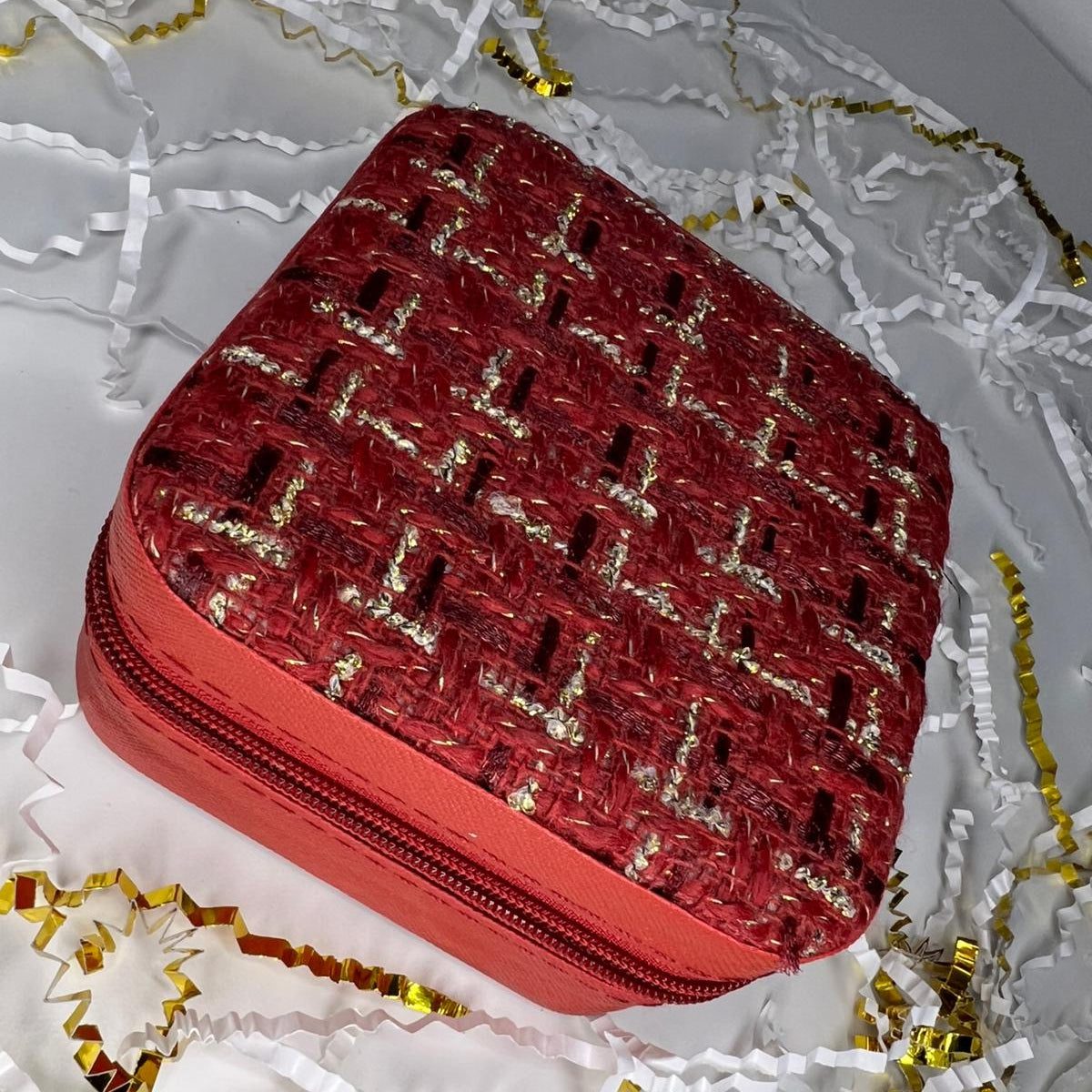 Pratique et élégante, cette boîte à bijoux bordeaux est parfaite pour ranger vos trésors avec style. Compacte et chic, elle protège vos bijoux tout en ajoutant une touche de couleur à votre coiffeuse ou votre sac.